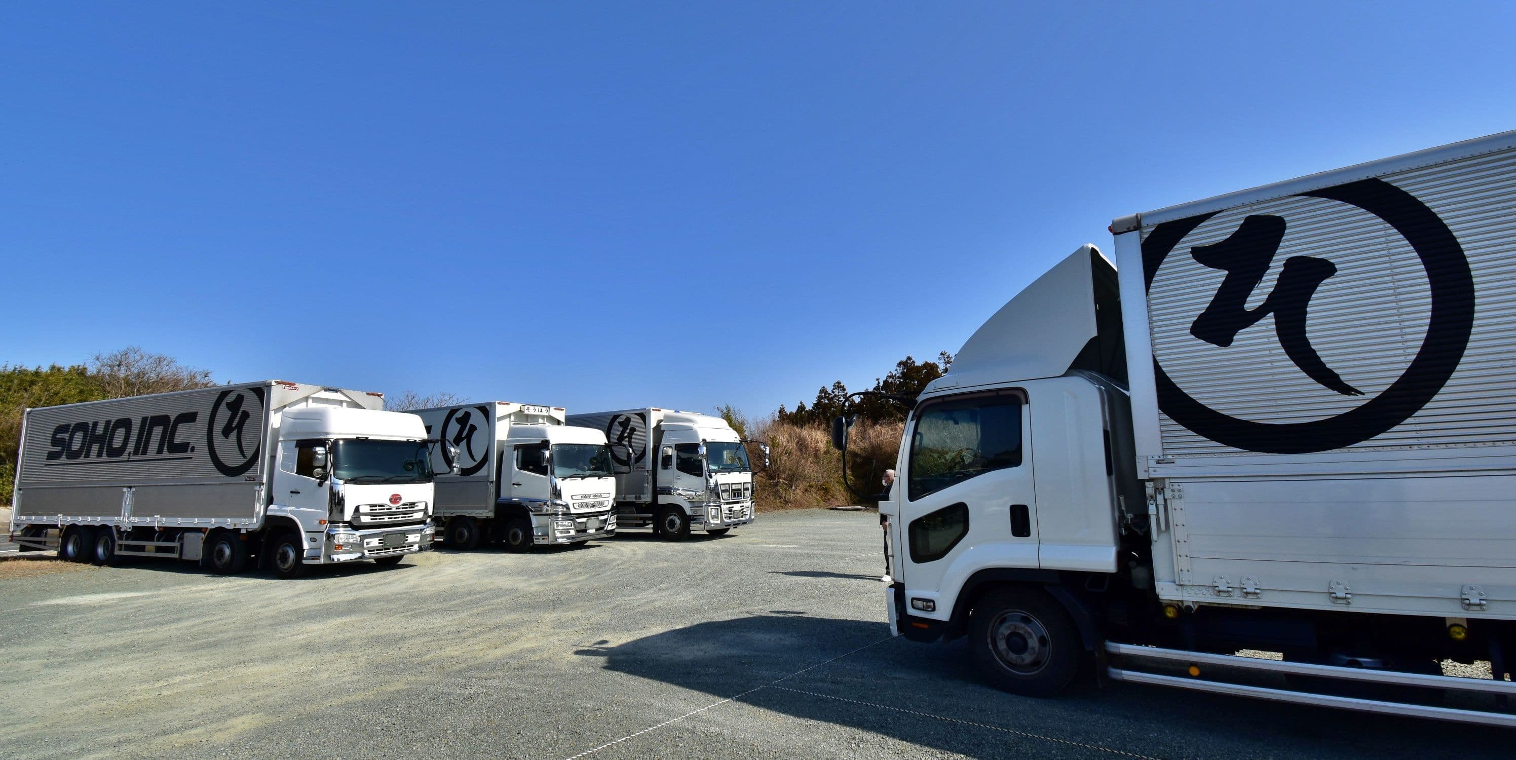 当社の車両は2tゲート車を除き、すべてウイング車と呼ばれる箱型の荷台をもった車両となっております。